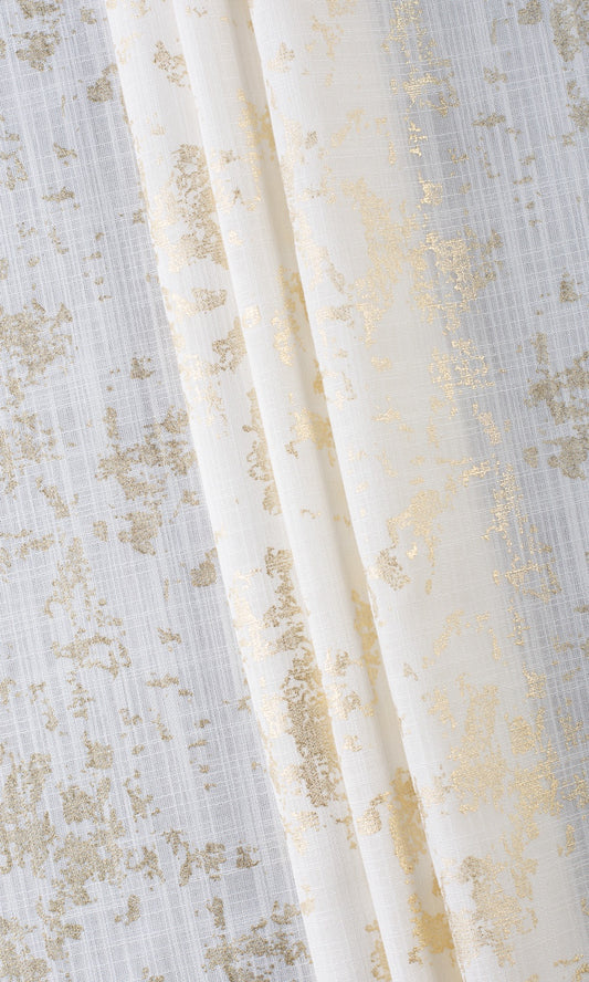'Soulful Glow' Metallic Abstract Print Custom Drapes (Cream/ Golden)