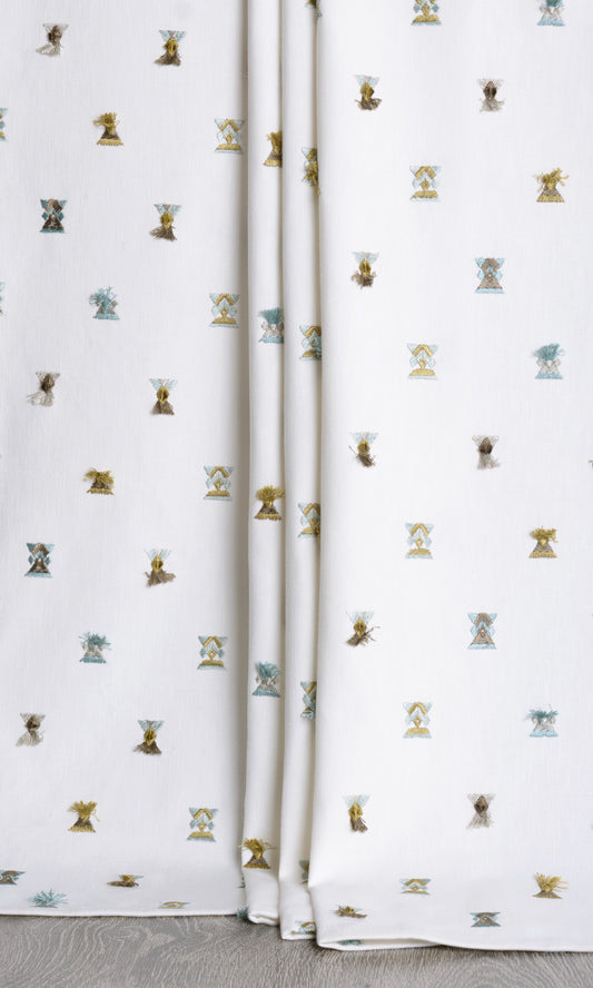 'Tassled Clouds' Embroidered Custom Curtains (Green/ Blue/ White)