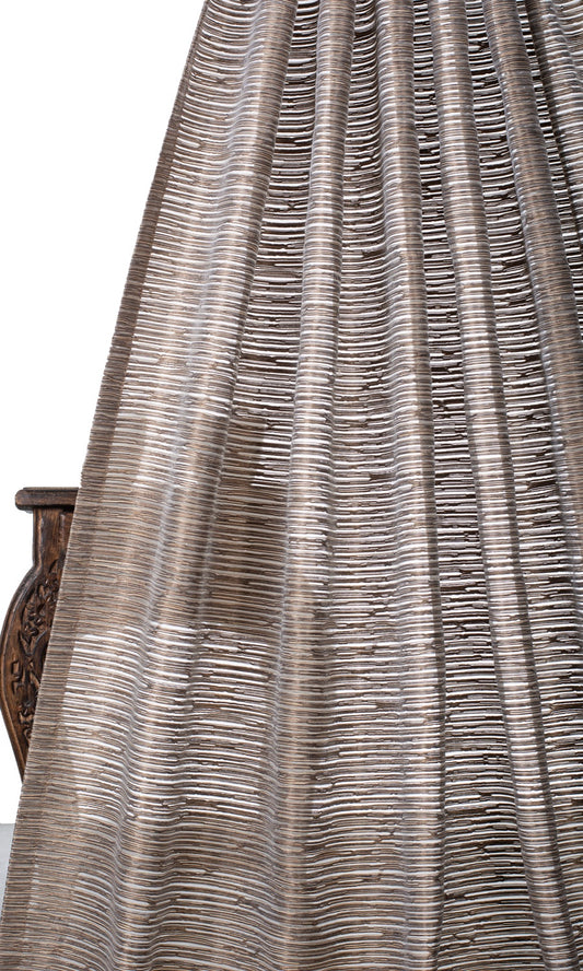 'Acoustic' Striped Sheer Made-to-Order Curtains (Coffee Brown)