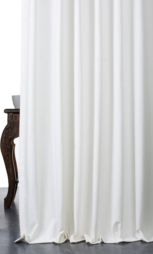 'Glowing Moon' Plain Linen-Texture Sheer Bespoke Drapes (White)