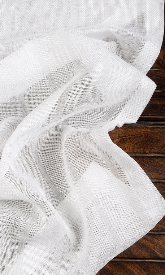 'Bright Frost' Textured Striped Sheer Bespoke Curtains (White)