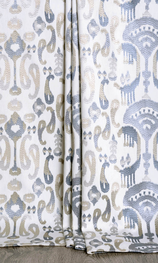 'Soft Creek' Ikat Print Custom Drapes (Gray/ Beige/ White)