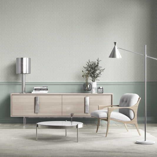 'Mayotte' Geometric Striped Wallpaper by the Metre (Green-Blue)