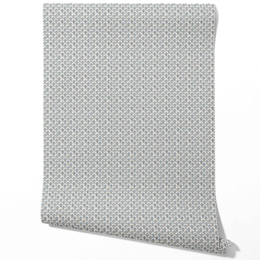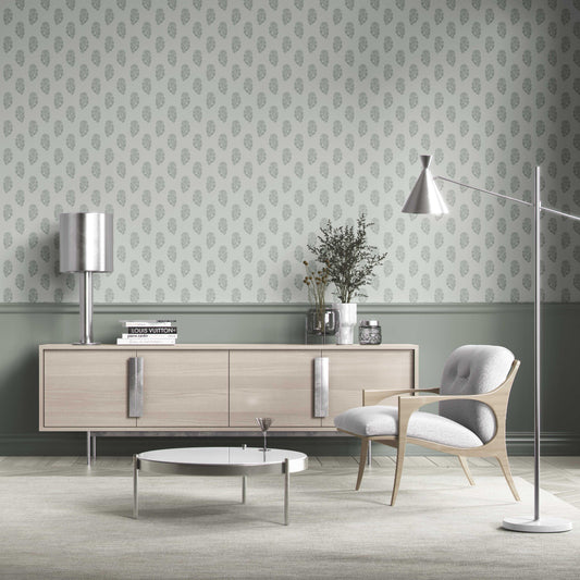 'Royan' Textured Teardrop/ Paisley Block Print Wallpaper by the Metre (Blue-Gray/ White)