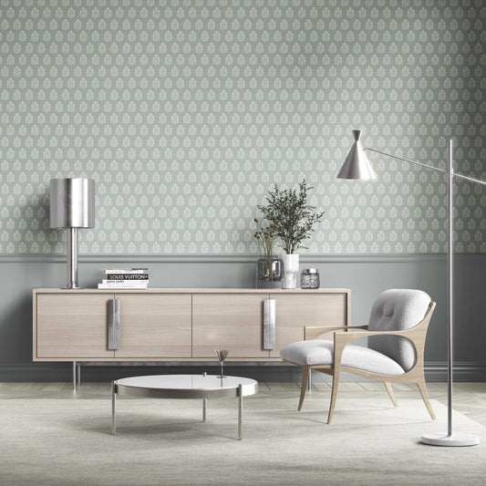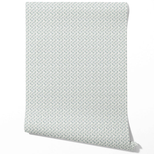 'Birnie' Geometric Scallops Floral Wallpaper by the Metre (Duck Egg Blue/ White)
