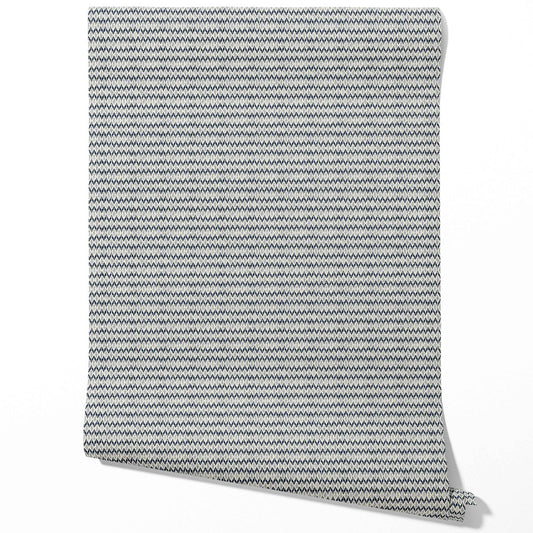 'Coral Bay' Geometric Ikat Striped Wallpaper by the Metre (Navy Blue/ White)