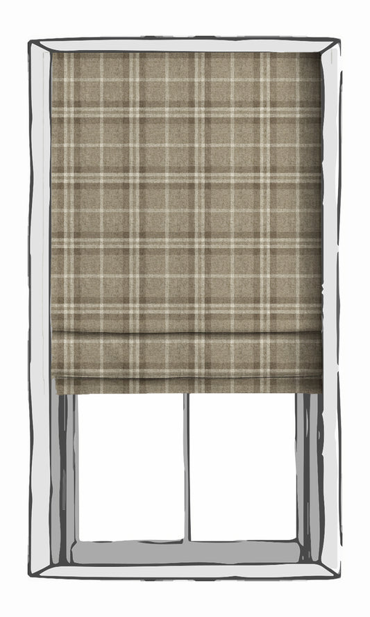 'Standing Still' Plaid Patterned Bespoke Drapes (Beige & Brown)