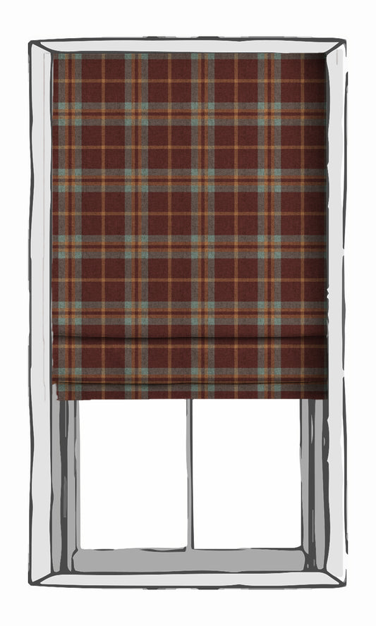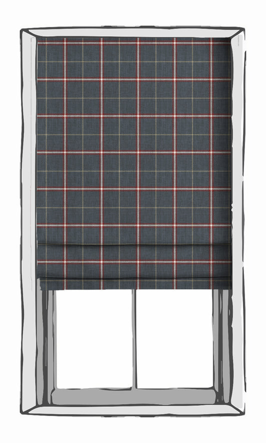 'Waveland' Checkered Bespoke Drapery (Wine Red/ Orange/ Blue)