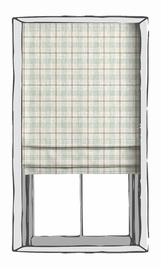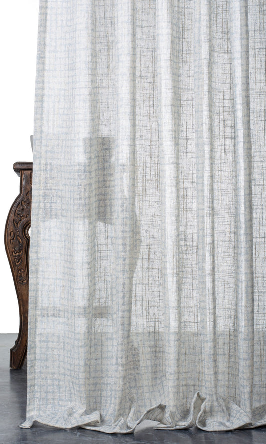 'Forest Sands' Sheer Linen Checked Bespoke Drapery (Light Blue)