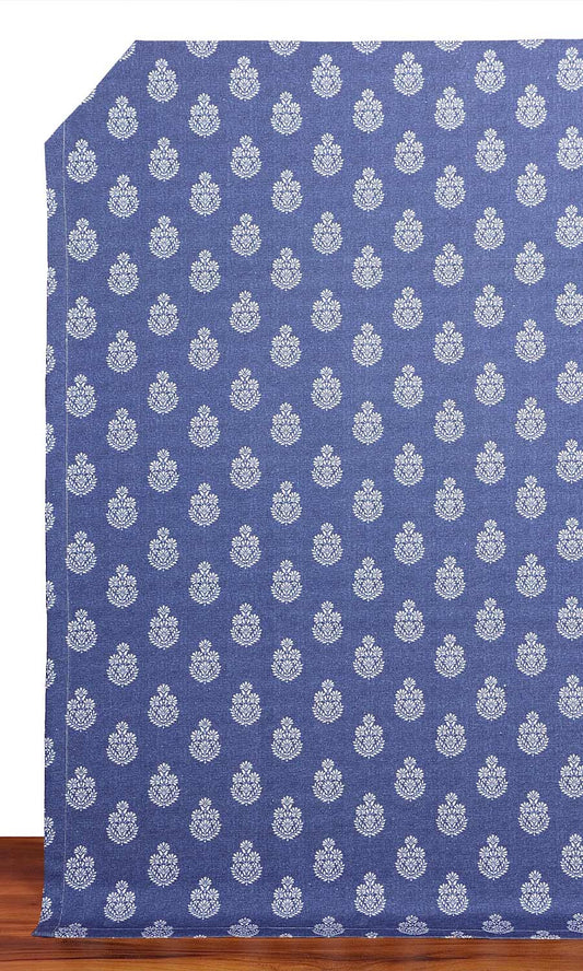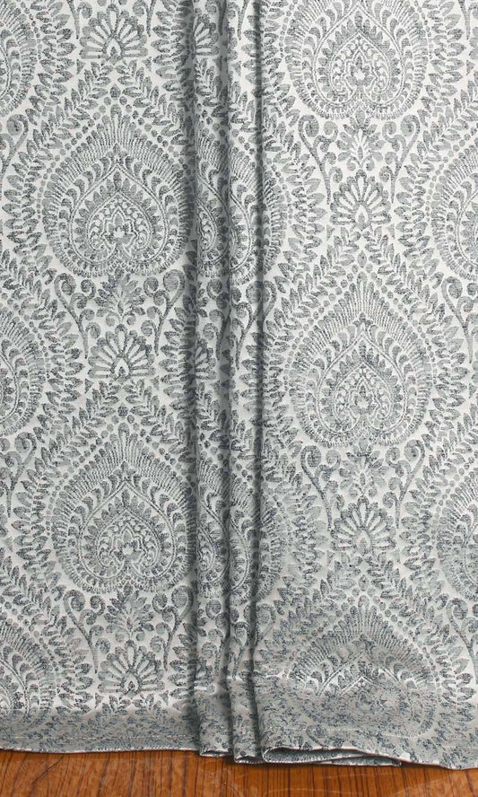 'Gosling Rock' Textured Floral Bespoke Drapes (Grey/ Deep Blue)