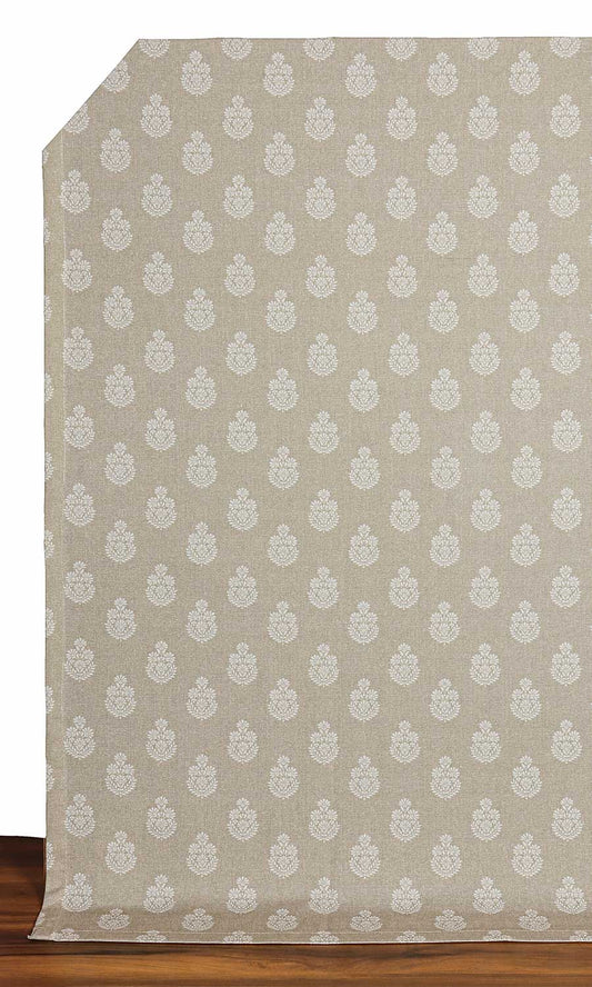 'Drizzle' Floral Cotton Made-to-Measure Curtains (Beige/ Grey)