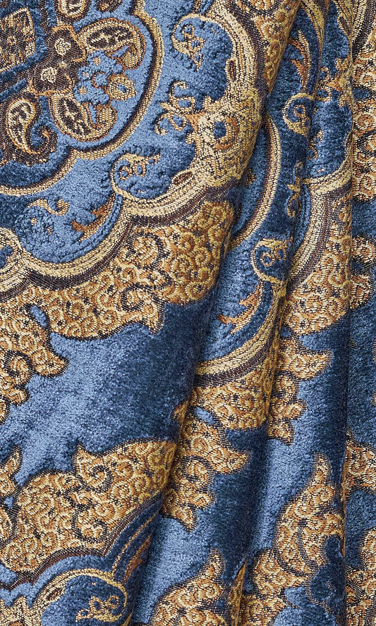 'Ryder' Damask Velvet Bespoke Drapery (Beige/ Brown/ Blue)