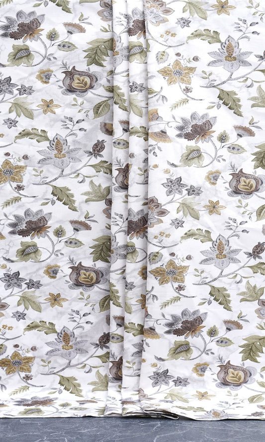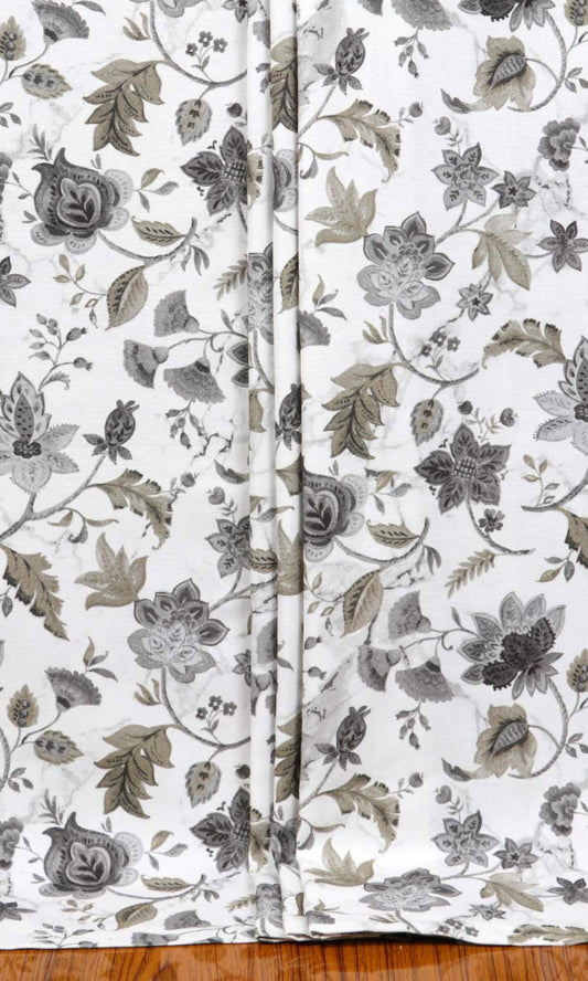 'Macaroon Pearl' Floral Cotton Custom Drapes (White/ Grey/ Green)