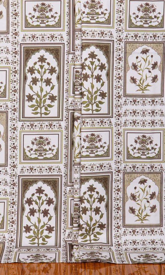 'Zarin' Floral Cotton Custom Size Curtain Panels (Brown/ Green)