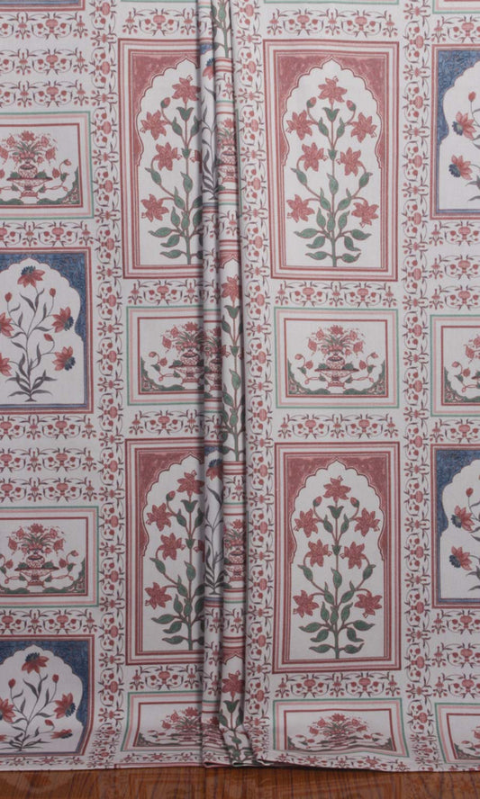 'Waking Morn' Floral Cotton Custom Drapes (Red/ Pink/ Green)