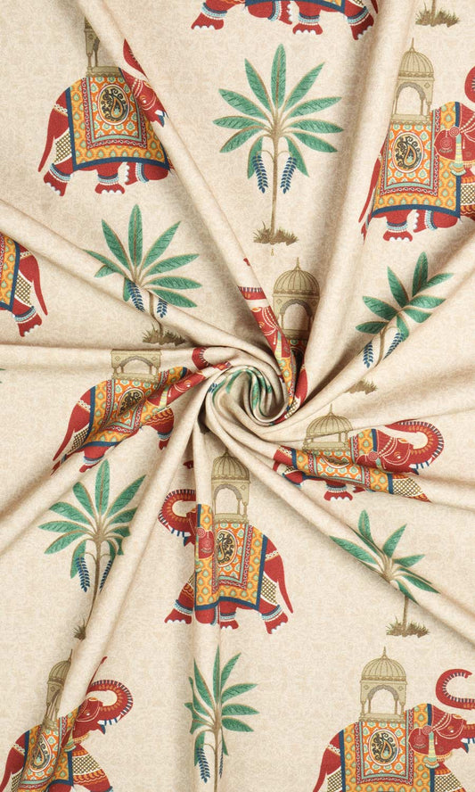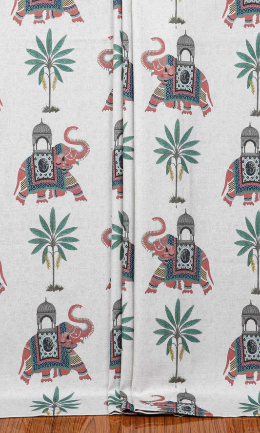 'Emine' Elephant Print Cotton Custom Drapes (Ivory/ Red/ Green)