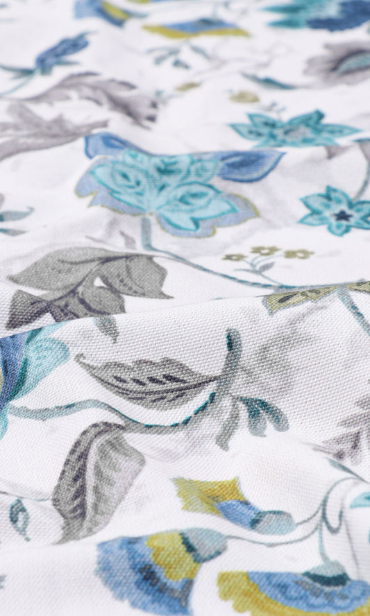 'French Haze' Floral Cotton Made-to-Measure Curtains (Blue)