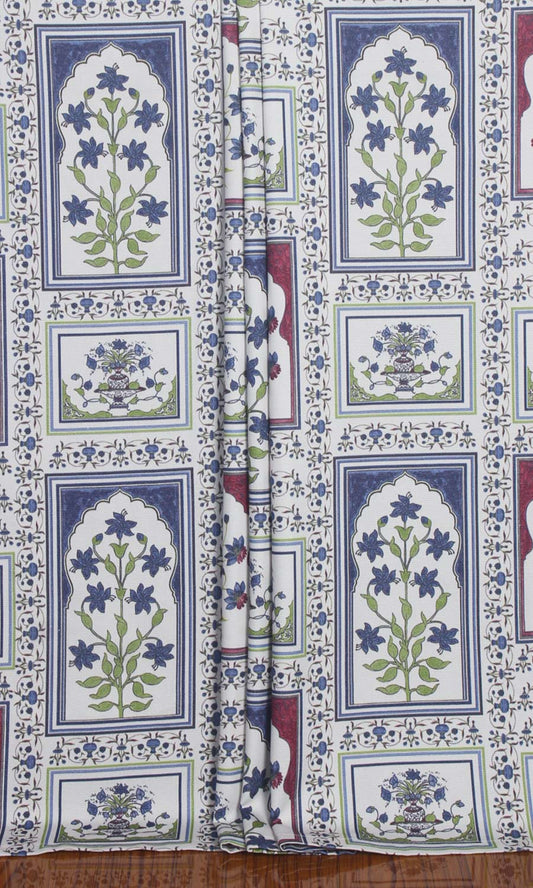 'Malabar Sunset' Floral Cotton Custom Drapes (White/ Blue/ Pink)