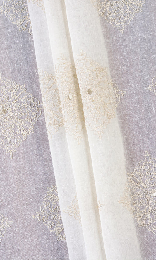 'Yildiz' Fabric by the Metre (White/ Beige)