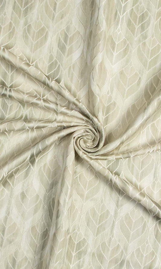 'Crescent Land' Cotton Made-to-Measure Curtains (Beige-Green)