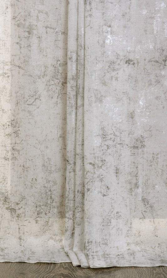 'Whispering Smoke' Fabric by the Metre (White/ Metallic Silver/ Grey)