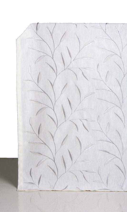 'Ski Adventure' Floral Embroidery Bespoke Drapes (White/ Cream)