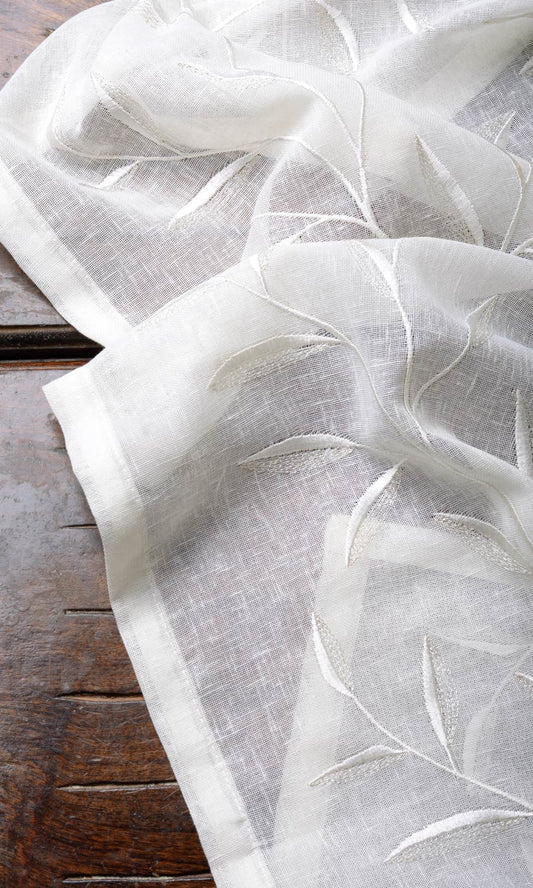 'Dawn Pie' Poly-Linen Embroidered Bespoke Drapes (White/ Cream)