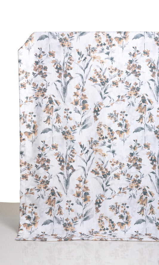 'Cheddar' Floral Print Sheer Window Curtains (White/ Orange)
