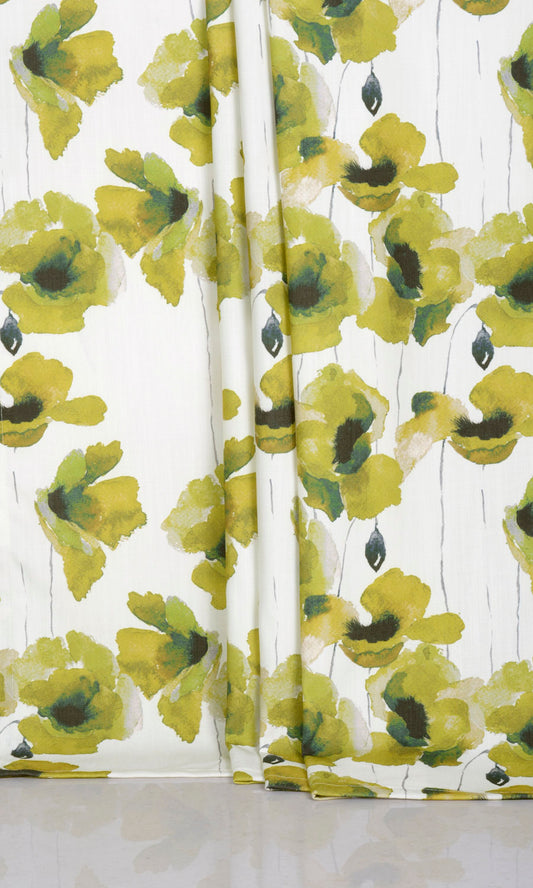 'Urban Cape' Water Lilies Floral Bespoke Drapes (Yellow/ Green)