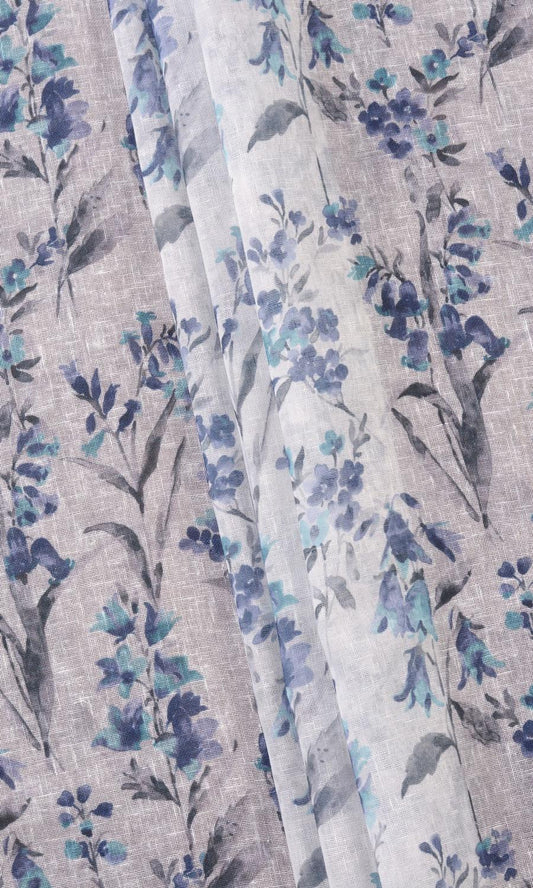 'Whisp Waltz' Sheer Floral Print Custom Size Drapery (Blue/ Grey)