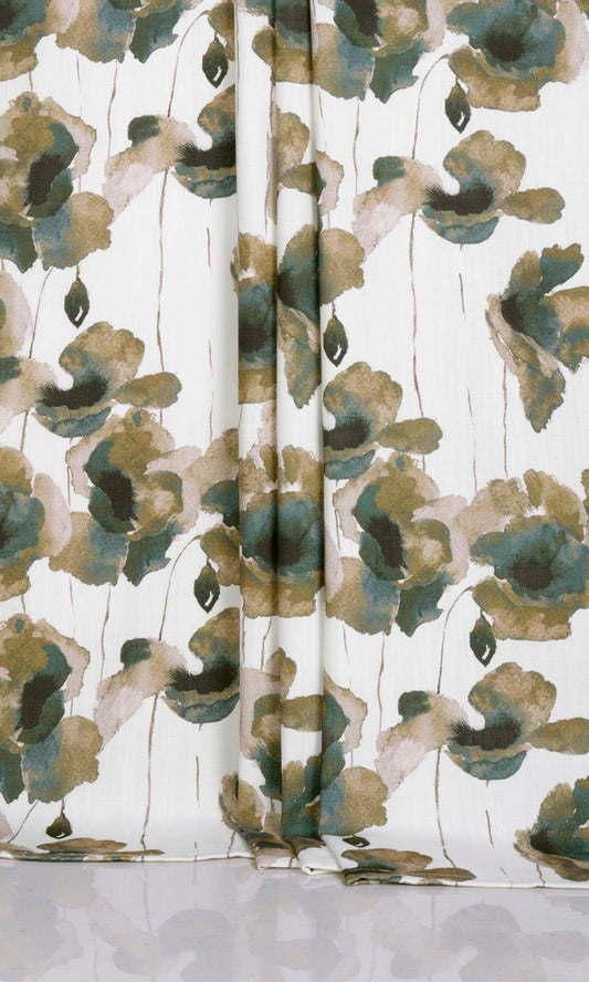'Bonnet House' Floral Custom Size Curtains (Ochre/ Green/ Red)