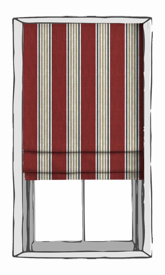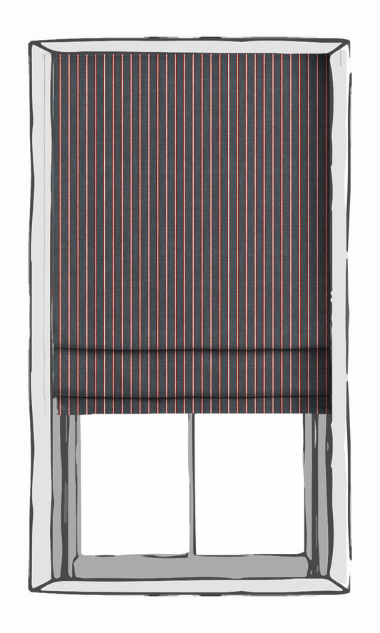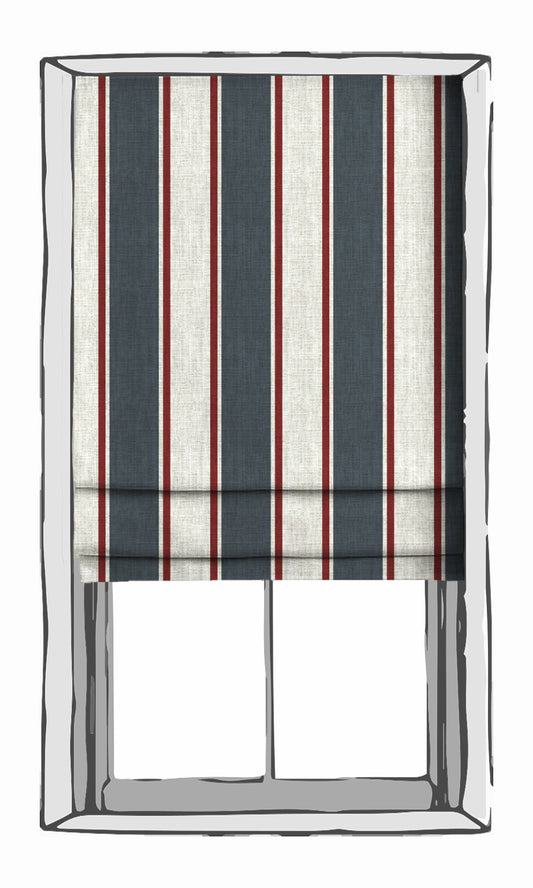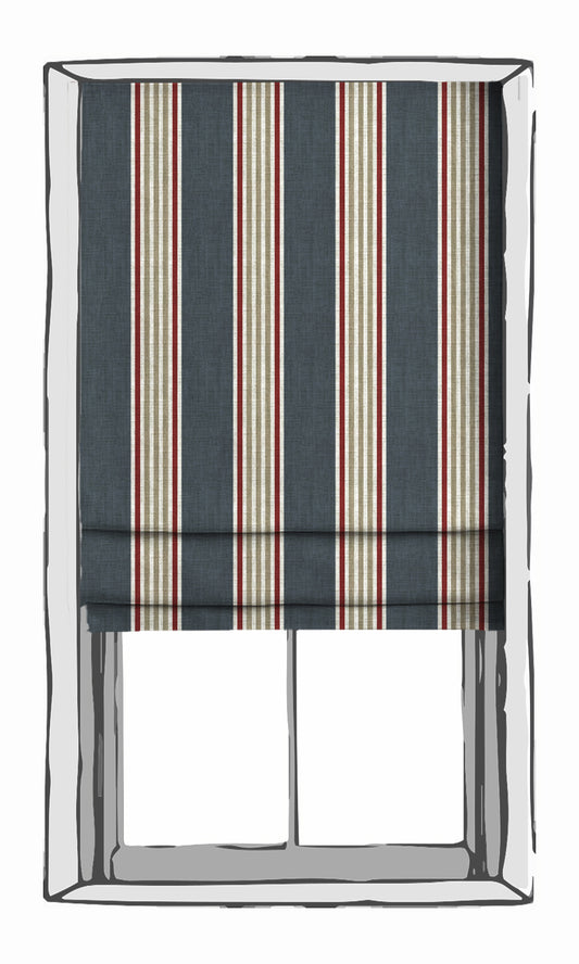 'Bassinet' Striped Window Drapes (Grey/ Red/ Slate Blue)