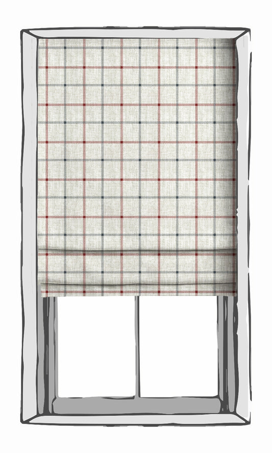 'Weathered' Check Patterned Custom Size Drapes (Linen White/ Red)