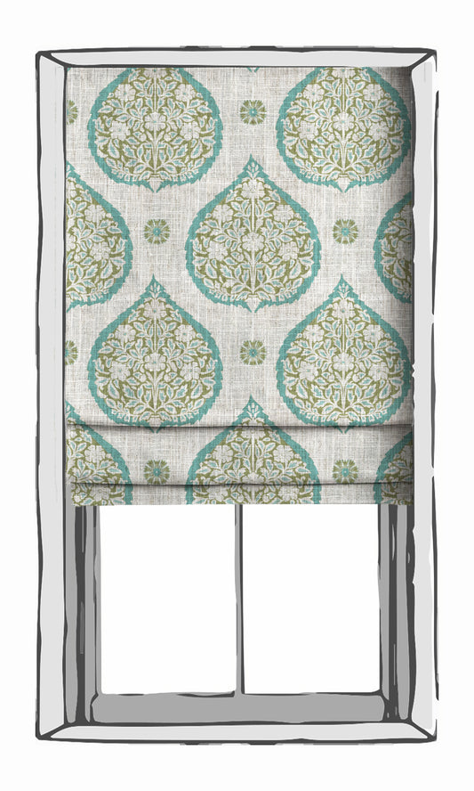 'Tranquil Sea' Paisley Made-to-Measure Curtains (Blue/ Green)
