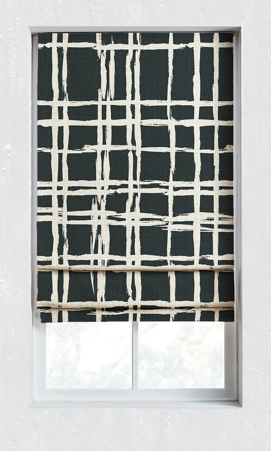 'Twisted Cornway' Geometrical Patterned Custom Drapes (Black/ Ivory)