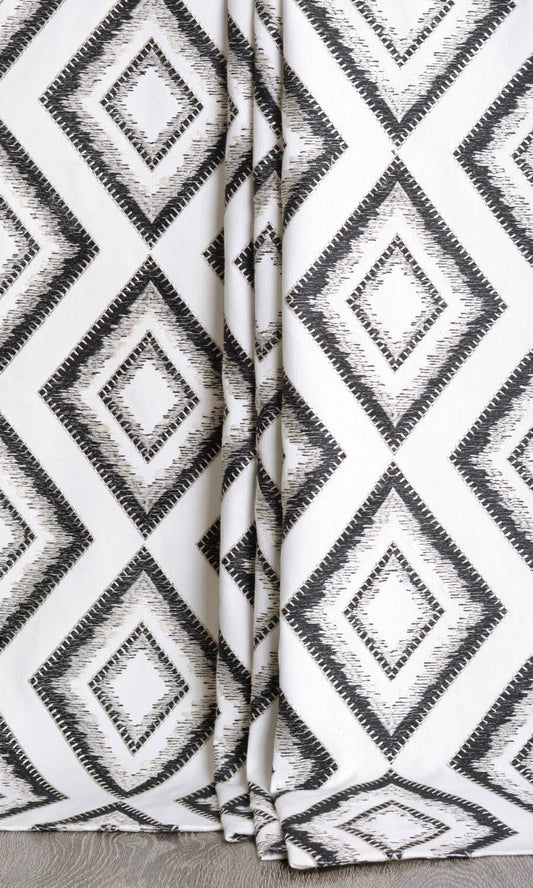 'Curacao' Geo-Print Custom Curtains (Black/ Ivory)