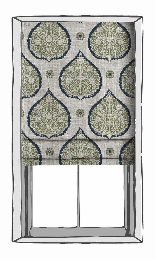 'Cool Canopy' Paisley Custom Size Drapery (Navy Blue/ Green)