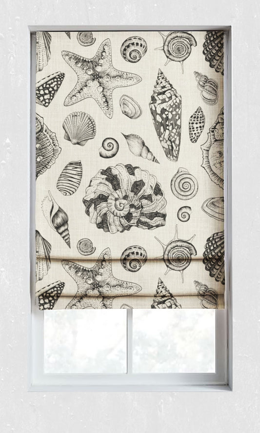 'Cowry' Coastal Theme Window Curtains (Black/ Milky White)