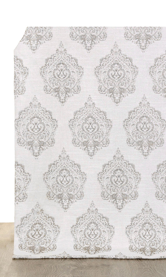'Countryside' Damask Poly-Cotton Custom Drapes (Off White/ Gray)