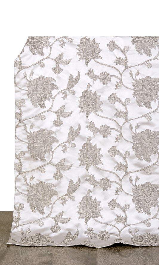 'Creamy Seed' Sheer Floral Embroidered Custom Drapery (White/ Cream)