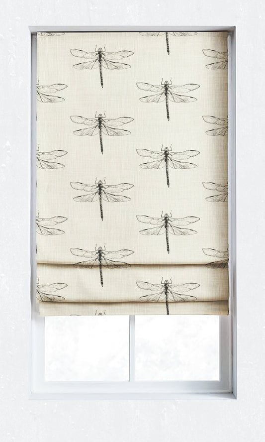 'Cromwell' Dragonfly Print Bespoke Drapery (Black/ White)