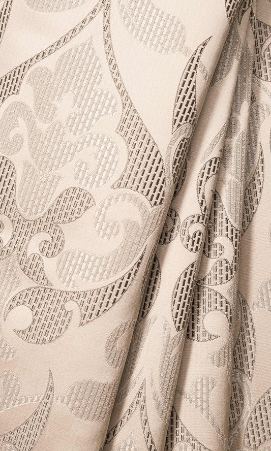 'Creamette' Ogee Patterned Made-to-Measure Drapes (Ivory/ Beige)