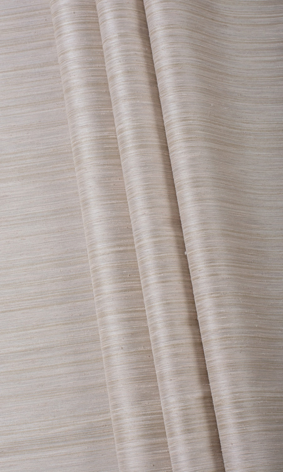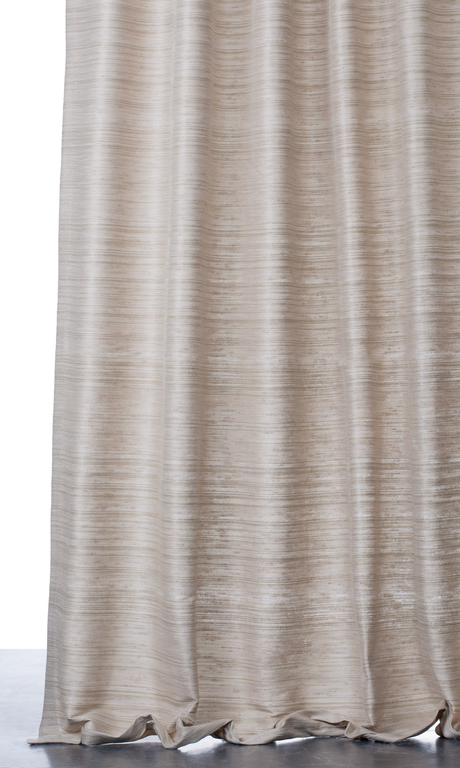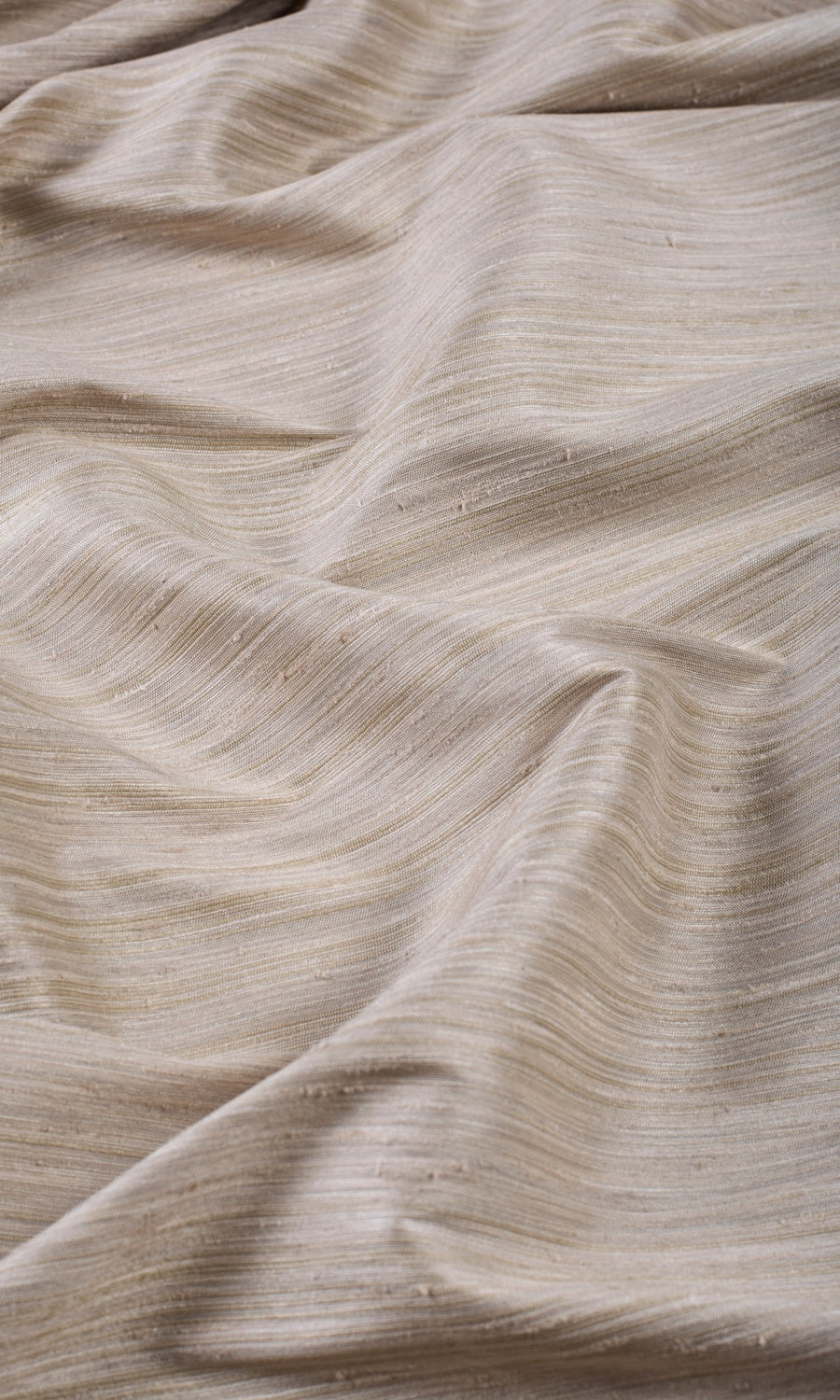 Timelessly elegant and effortlessly glamorous, 'Alda' is a beige faux silk that echoes the mellow richness of sunlit sand and aged parchment. Its gentle, sandy tone, deepened and softened in a rhythmic flow by fine striations, offers an interplay of lustre and texture. Its graceful drape and soft glow are the perfect layer for serene interiors that embrace light, air and quiet luxury.