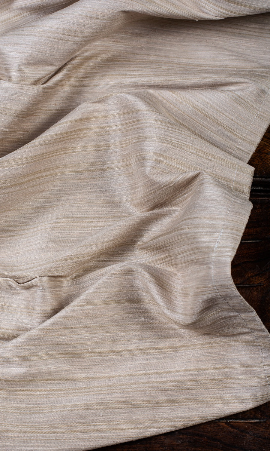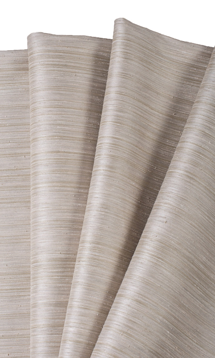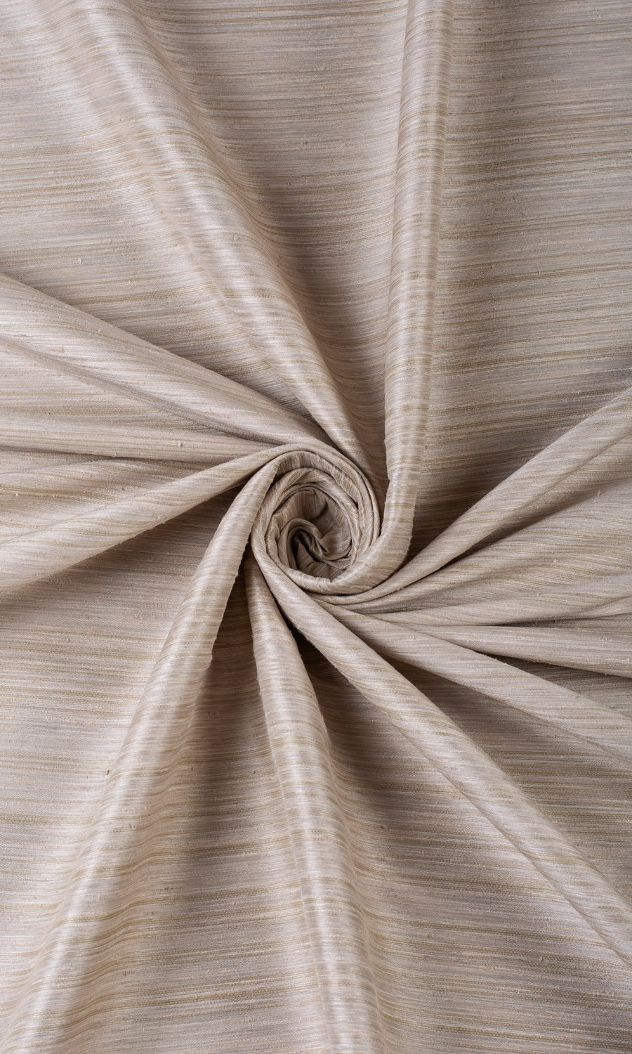 Timelessly elegant and effortlessly glamorous, 'Alda' is a beige faux silk that echoes the mellow richness of sunlit sand and aged parchment. Its gentle, sandy tone, deepened and softened in a rhythmic flow by fine striations, offers an interplay of lustre and texture. Its graceful drape and soft glow are the perfect layer for serene interiors that embrace light, air and quiet luxury.