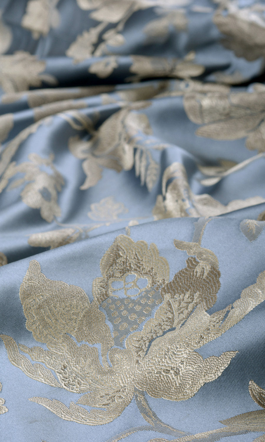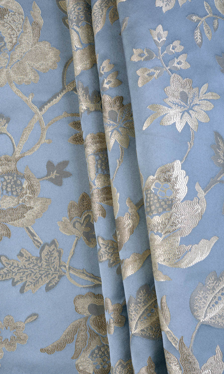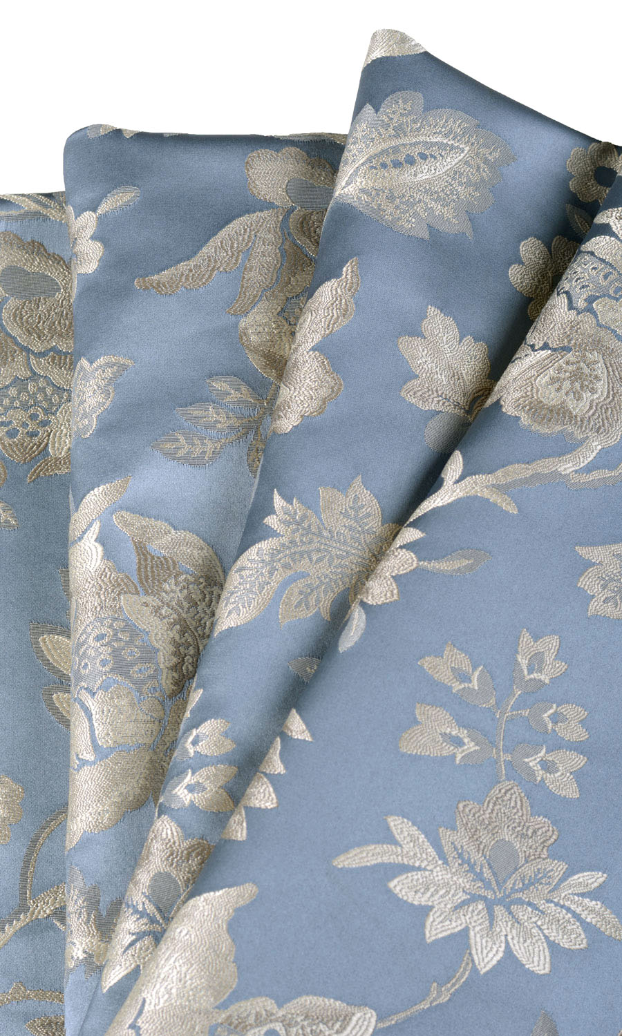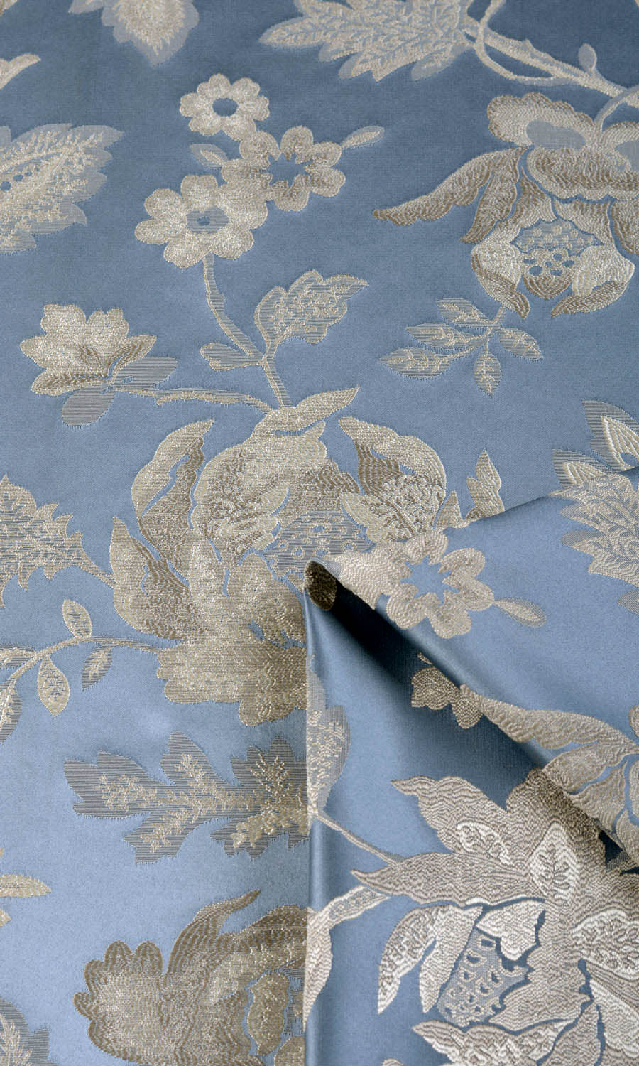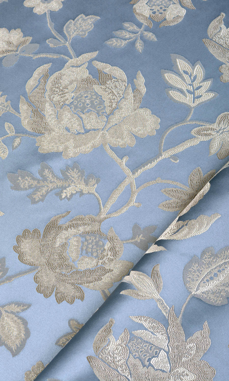A bold classical beauty, 'Andes' is an aureate visual treat of enlarged rose bush motifs on a lustrous indigo blue backdrop, bringing the opulence and elegance of a traditional floral home to a full circle with a contemporary twist. Shunning the traditional golden details, this modish floral fabric embraces silver accents to offer pizzazz in true modern style.