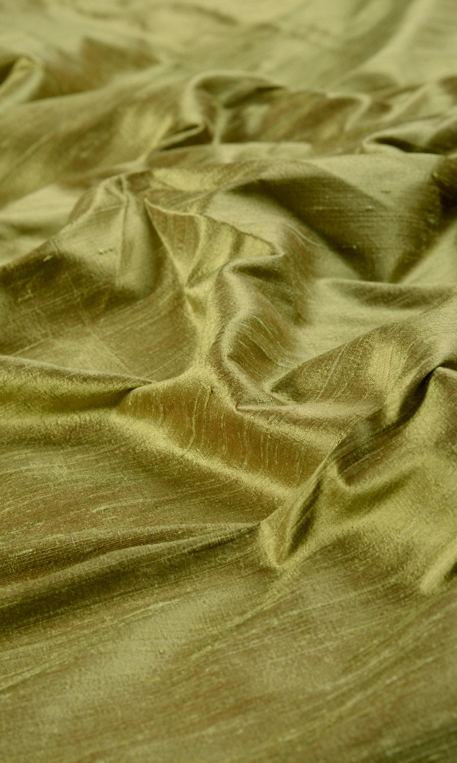 'Asparagus' Pure Silk Made-to-Order Curtain Panels (Olive Green)