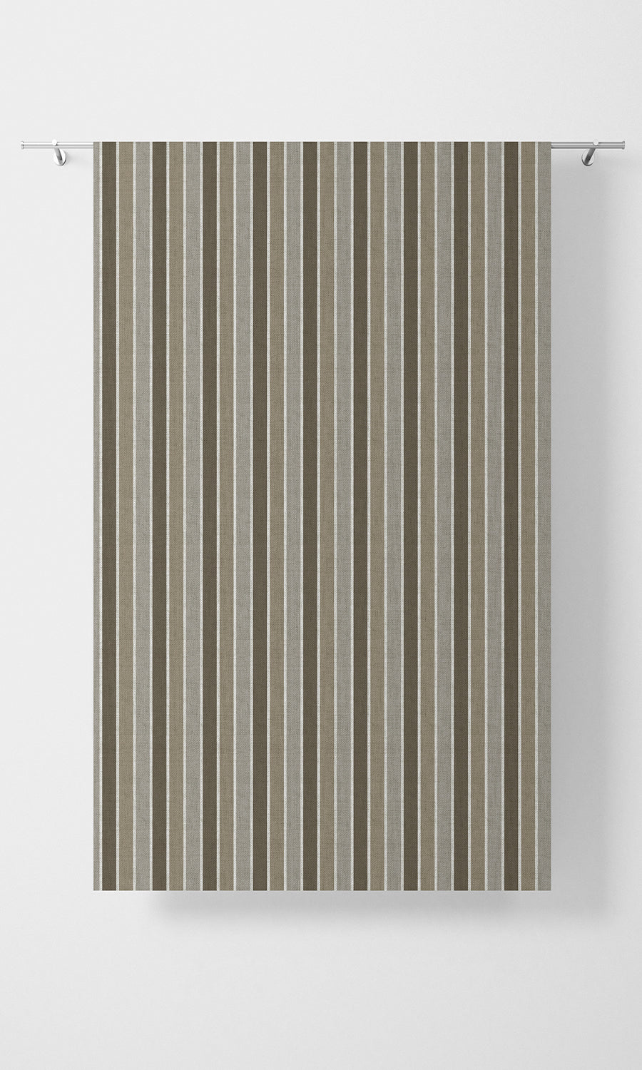 Featuring fine, evenly spaced stripes in a brown-white palette with a textured finish, 'Ban Rak' brings an easygoing, timeworn feel to any space. Its understated pattern blends effortlessly into rustic settings with wooden trestle tables and stone floors or settles into modern spaces alongside slatted walls and simple, clean-lined furniture. A classic fabric with a down-to-earth charm.