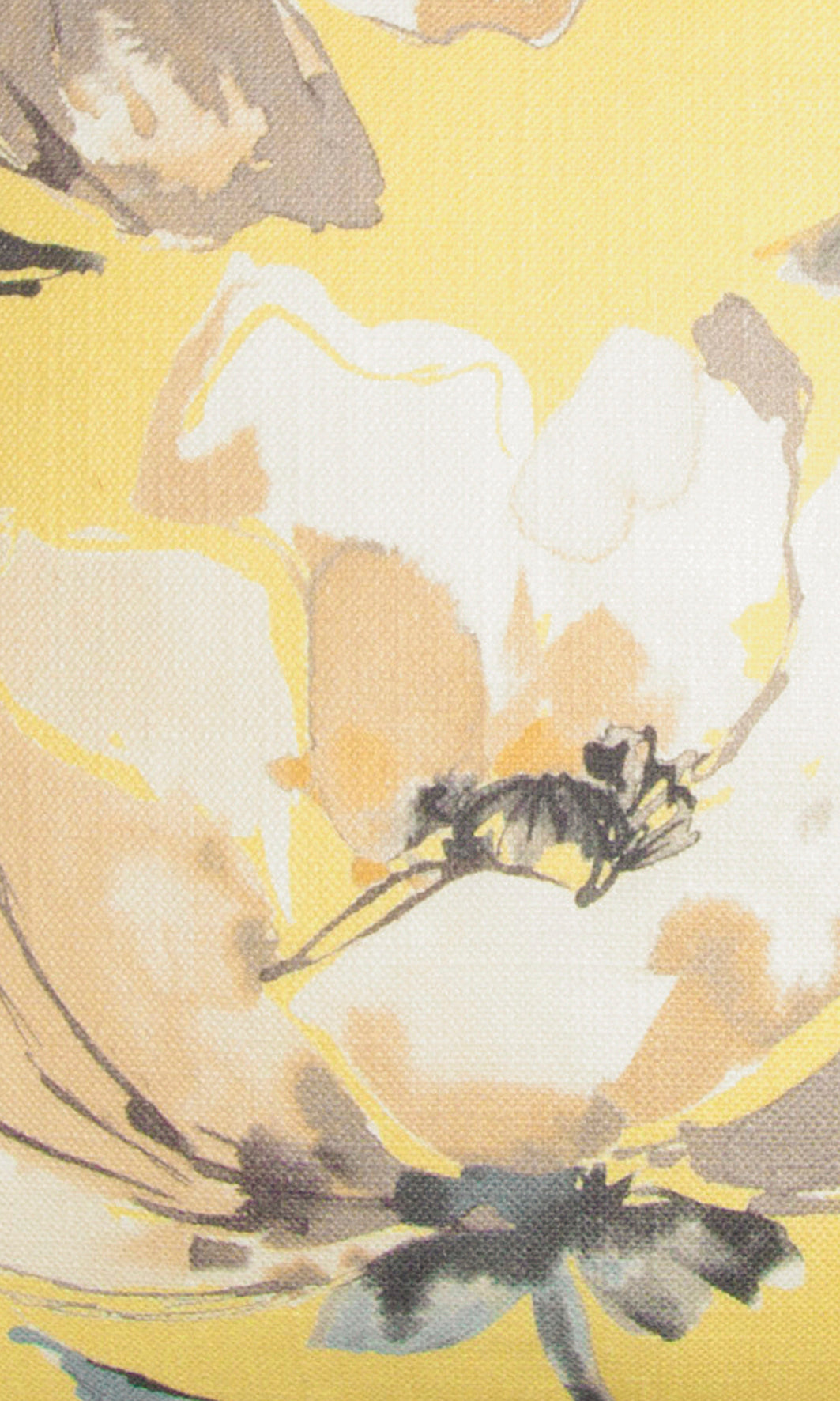 A pale yellow cotton with grey and white floral pattern is the right way to add a pop of colour and dose of pattern to a casual modern space. From patios and sunrooms that connect with the outdoors to gender-neutral kids' rooms, 'Banana Cream's sunny palette and outdoorsy theme is all you need for a finishing touch.