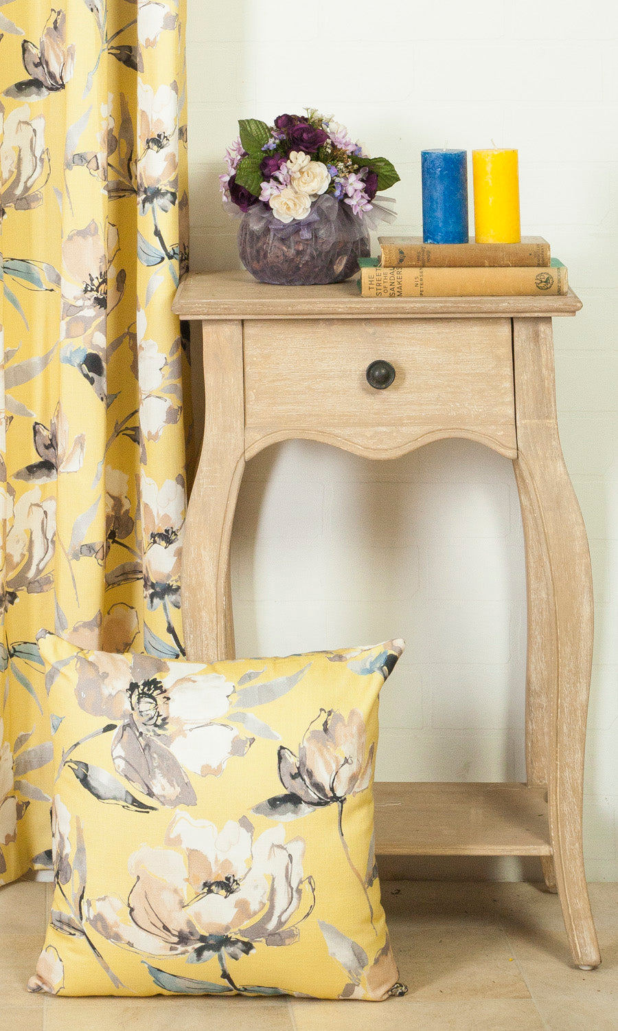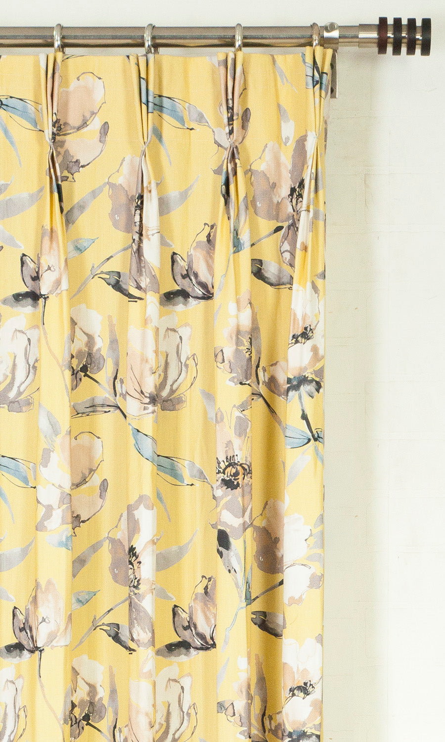 'Banana Cream' Floral Cotton Custom Size Curtains (Yellow)