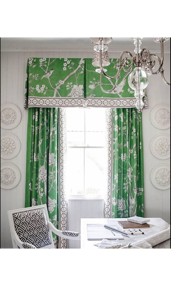 The box pleats which are achieved in a very controlled way are the unique feature of this valance. Select plain-coloured fabrics to show off these stylish folds in the best light, though small and medium-scaled patterned fabrics also look great in this style. We especially like boxy patterns like plaids, ginghams, or buffalo checks to further accentuate the sharp angles of the valance in a masculine space.